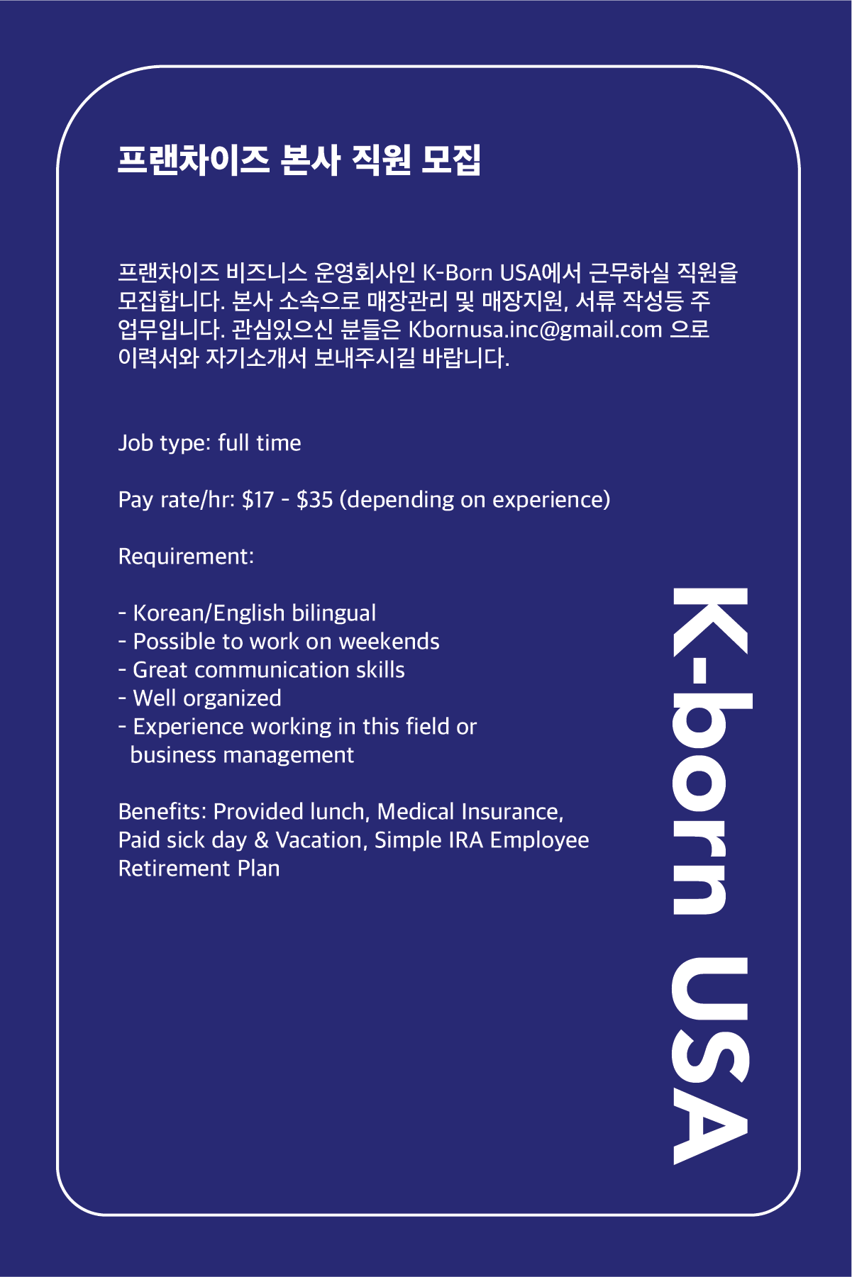 [요리/스시/제과] Korean BBQ (헤드셰프, 주방찬모, 정육기술자) 구합니다. Housto |