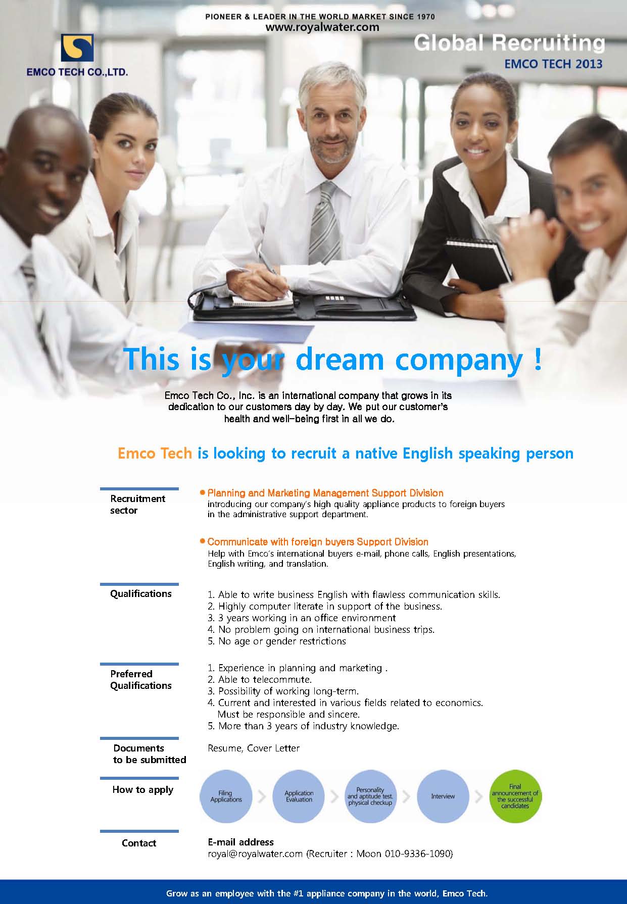 Emco Tech 2013 채용공고 USA