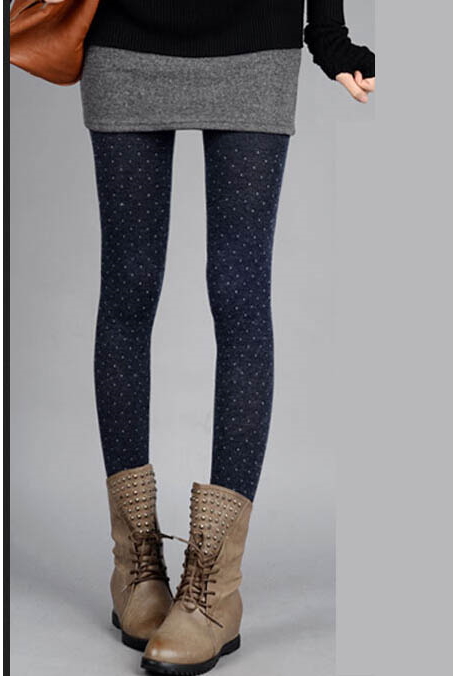 Wool Blend Warm Polka Dot Leggings Navy