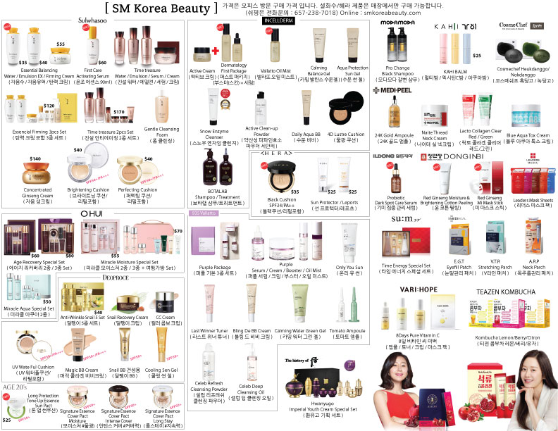 제품명 [미주 최저가] 한국 유명 화장품/설화수/오휘/더 후/ 인셀덤/ 모다모다 샴푸/ 켄트/ 동인비 등