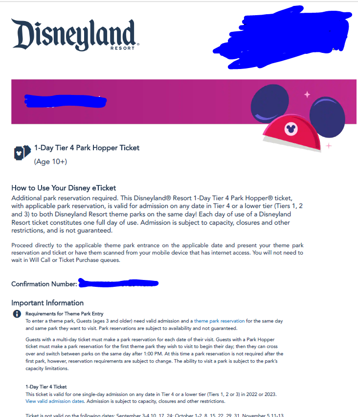 [티켓/상품권] 디즈니랜드 LA 티켓 팝니다(1-Day Tier 4 Hopper)