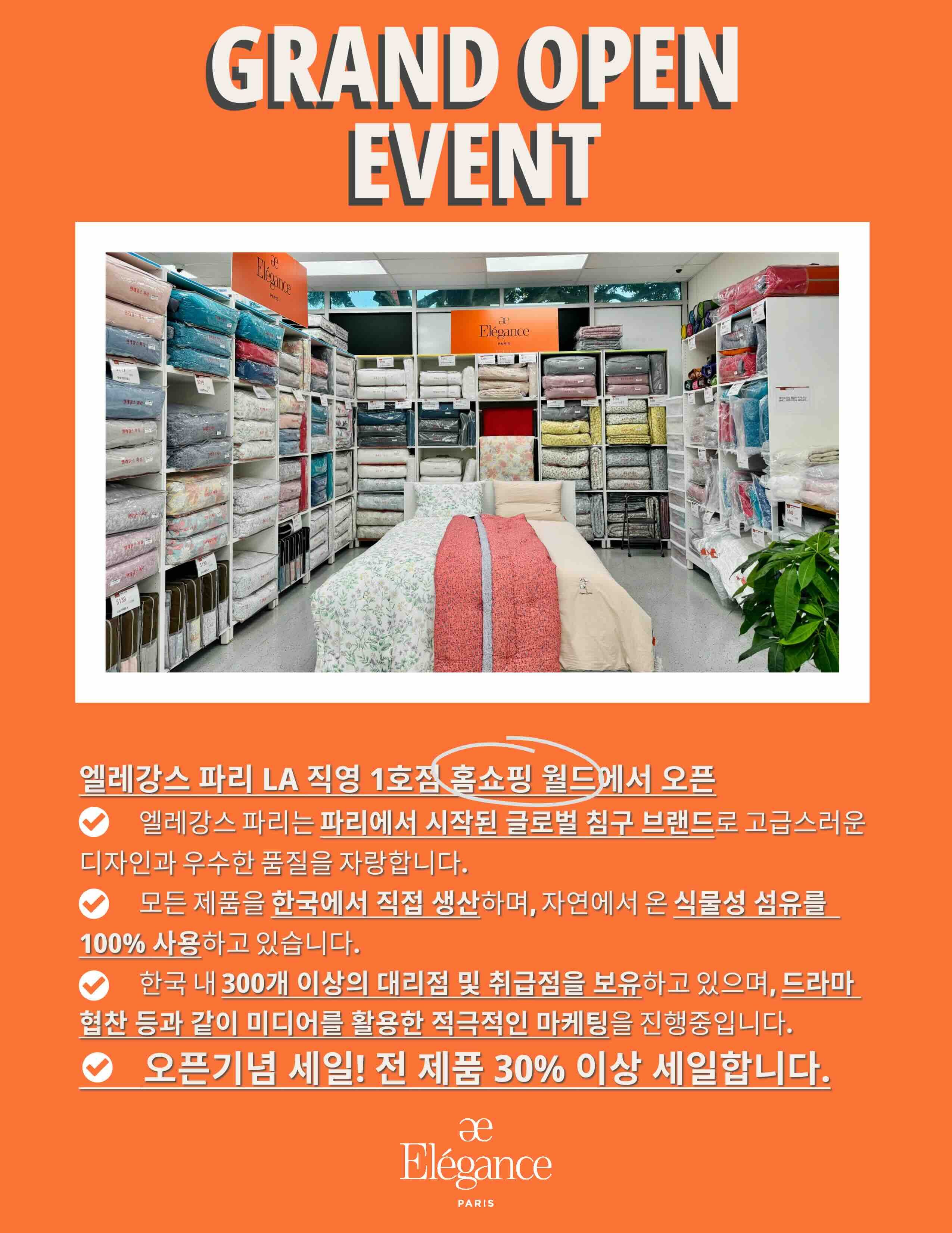 Made in Korea 한국식 이불 엘레강스파리 GRAND OPEN EVENT
